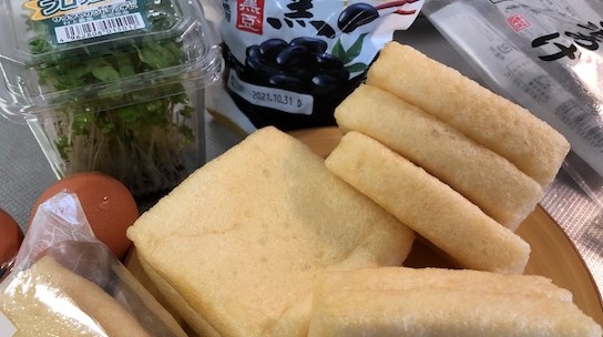 油揚げ 8枚、黒豆 適宜、卵 2個
